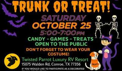 Event Details Bring the whole family for a spooktacular evening at Lake Conroe’s newest luxury RV resort! What to Expect: Safe & fun Trunk-or-Treating for kids Candy, g...