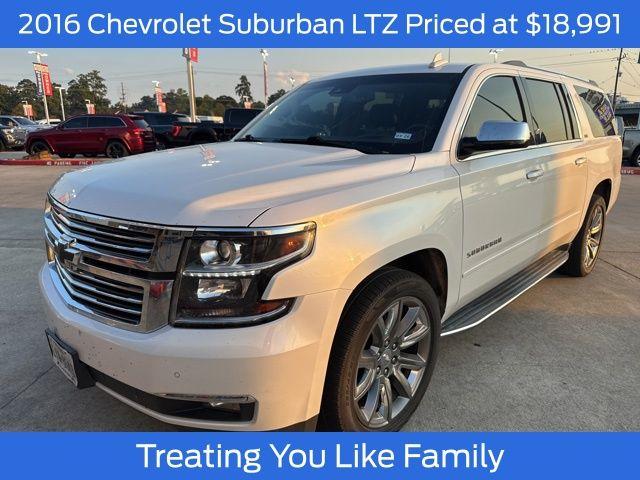 Navigation System, Body Security Content Theft-Protection Package, Enhanced Driver Alert Package (Y86), License Plate Front Mounting Package, Magnetic Ride Control Suspension Package, Max Trailering Package, Preferred Equipment Group 1LZ, Sun, Entertainment & Destinations Package, 10 Speakers, AM/FM radio: SiriusXM, Bose Centerpoint Premium 10-Speaker Surround Sound, CD player, Floor Console w/Storage Area, HD Radio, Radio: Chevrolet MyLink AM/FM Stereo w/Navigation, Rear audio controls, Single-Slot CD/MP3 Player, SiriusXM Satellite Radio, Air Conditioning, Automatic temperature control, Front dual zone A/C, Rear air conditioning, Rear window defroster, 5 12-Volt Auxiliary Power Outlets, 6-Way Power Front Passenger Seat Adjuster, Enhanced Driver Information Center, Hands Free Power Liftgate, Head-Up Display, Heated 2nd Row Seats, Memory seat, Memory Settings, Pedal memory, Power driver seat, Power steering, Power windows, Power-Adjustable Accelerator & Brake Pedals, Remote keyless entry, Steering wheel memory, Steering wheel mounted audio controls, Headphones, Universal Home Remote, Adaptive suspension, Power Tilt & Telescoping Steering Column, Speed-sensing steering, Traction control, 4-Wheel Antilock Disc Brakes, 4-Wheel Disc Brakes, ABS brakes, Automatic Collision Preparation, Driver & Front Passenger Airbags, Dual front impact airbags, Dual front side impact airbags, Emergency communication system: OnStar Guidance, Front anti-roll bar, Front wheel independent suspension, Low tire pressure warning, Occupant sensing airbag, Overhead airbag, Passive Entry System, Push Button Keyless Start, Rear anti-roll bar, Power Tilt-Sliding Sunroof w/Express-Open/Close, 3rd Row DVD Screen, Rear Seat Entertainment System, Power Liftgate, Brake assist, Electronic Stability Control, Exterior Parking Camera Rear, Front & Rear Parking Assist, Auto High-beam Headlights, Delay-off headlights, Fog Lamps, Front fog lights, Fully automatic headlights, High-Intensity Discharge Headlights, Extended-Range Remote Keyless Entry, Panic alarm, Security system, Theft-Deterrent Alarm System, Unauthorized Entry Theft-Deterrent System, Vehicle Inclination Sensor, Vehicle Interior Movement Sensor, Adaptive Cruise Control, Electronic Cruise Control w/Set & Resume Speed, Speed control, Auto-dimming door mirrors, Black Assist Steps, Bodyside moldings, Bumpers: body-color, Heated door mirrors, Intellibeam Headlamps w/Automatic High Bean On/Off, Power door mirrors, Power Folding & Adjustable Heated Outside Mirrors, Roof rack: rails only, Spoiler, Turn signal indicator mirrors, 1st & 2nd Row Color-Keyed Carpeted Floor Mats, Adjustable pedals, Apple CarPlay, Auto-Dimming Inside Rear-View Mirror, Auto-dimming Rear-View mirror, Color-Keyed Carpeting Floor Covering, Compass, Driver door bin, Driver vanity mirror, Enhanced Driver Instrument Information Display, Forward Collision Alert Sensor Indicator, Front reading lights, Garage door transmitter, Heated & Cooled Front Reclining Bucket Seats, Heated Leather Wrapped Steering Wheel, Heated steering wheel, Illuminated entry, Lane Departure Warning & Safety Alert Seat, Lane Keep Assist, Leather Shift Knob, OnStar Basic Plan For 5 Years, OnStar w/4G LTE, Outside temperature display, Overhead console, Passenger vanity mirror, Rear Cross-Traffic Alert Sensor Indicator, Rear reading lights, Side Blind Zone Alert w/Lane Change Alert, Tachometer, Telescoping steering wheel, Tilt steering wheel, Trip computer, Voltmeter, Wireless Charging, 3rd Row 60/40 Power Fold Split-Bench, 3rd row seats: split-bench, Front Bucket Seats, Front Center Armrest, Heated & Cooled Driver & Front Passenger Seats, Heated front seats, Heated rear seats, Perforated Leather-Appointed Seat Trim, Power passenger seat, Power Release 2nd Row Bucket Seats, Split folding rear seat, Ventilated front seats, Passenger door bin, Roof-Mounted Luggage Rack Side Rails, Integrated Trailer Brake Controller, Alloy wheels, Wheels: 20' x 9' Polished-Aluminum, Wheels: 22' Premium Painted w/Chrome Inserts, Rain sensing wipers, Rear window wiper, Variably intermittent wipers, 3.42 Rear Axle Ratio