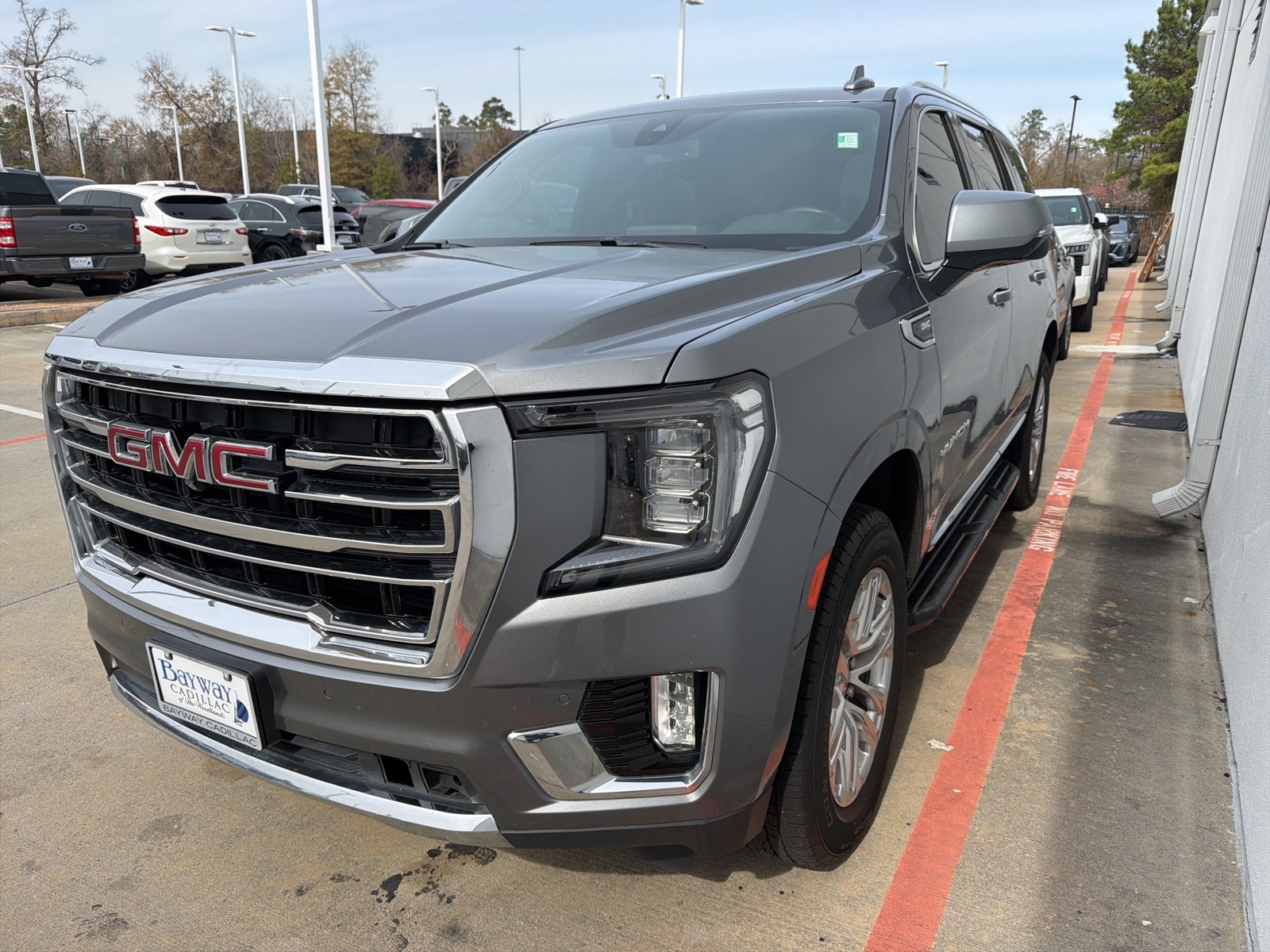 Navigation System,   Illumination Package (LPO),   License Plate Front Mounting Package,   Preferred Equipment Group 5SA,   14 Speakers,   AM/FM radio: SiriusXM with 360L,   Bose 14-Speaker Surround w/CenterPoint,   HD Radio,   Radio: AM/FM/SiriusXM w/Navigation,   SiriusXM w/360L,   Air Conditioning,   Automatic temperature control,   Front dual zone A/C,   Rear air conditioning,   Rear window defroster,   Hands-Free Power Programmable Rear Liftgate,   Heads-Up Display,   Memory seat,   Power driver seat,   Power steering,   Power windows,   Remote keyless entry,   Steering wheel memory,   Steering wheel mounted audio controls,   Universal Home Remote,   Adaptive suspension,   Auto-leveling suspension,   Four wheel independent suspension,   Heated Automatic Steering Wheel,   Magnetic Ride Control Suspension,   Speed-sensing steering,   Traction control,   4-Wheel Disc Brakes,   ABS brakes,   Dual front impact airbags,   Dual front side impact airbags,   Emergency communication system: OnStar and GMC connected services capable,   Front anti-roll bar,   Low tire pressure warning,   Occupant sensing airbag,   Overhead airbag,   Rear anti-roll bar,   Dual-Pane Panoramic Power Sunroof,   Power Liftgate,   Brake assist,   Electronic Stability Control,   Front & Rear Park Assist,   Hill Descent Control,   Auto High-beam Headlights,   Delay-off headlights,   Front fog lights,   Fully automatic headlights,   Panic alarm,   Security system,   Speed control,   Not Equipped w/Automatic Stop/Start,   Auto-dimming door mirrors,   Bodyside moldings,   Bright Front & Rear Door Sill Plates,   Bumpers: body-color,   Chrome Door Handles w/Body-Color Strip,   Dual Exhaust System,   Galvano Bodyside Moldings,   Heated door mirrors,   Illuminated Front GMC Emblem (LPO),   Illuminated Mirror GMC Emblem (LPO),   IntelliBeam Automatic High Beam On/Off,   Outside Heated Power-Adjustable Mirrors,   Power door mirrors,   Roof rack: rails only,   Spoiler,   Turn signal indicator mirrors,   15' Diagonal Multi-Color Head-Up Display,   Apple CarPlay/Android Auto,   Auto-dimming Rear-View mirror,   Automatic Emergency Braking,   Compass,   Driver door bin,   Driver vanity mirror,   Floor Console,   Following Distance Indicator,   Forward Collision Alert,   Front Pedestrian Braking,   Front reading lights,   Garage door transmitter,   HD Surround Vision,   Heated steering wheel,   Illuminated entry,   Inside Rear-View Auto-Dimming Mirror,   Jet Black Interior Trim,   Lane Change Alert w/Side Blind Zone Alert,   Lane Keep Assist w/Lane Departure Warning,   Leather steering wheel,   Not Equipped w/Steering Column Lock,   Outside temperature display,   Overhead console,   Passenger vanity mirror,   Power Tilt & Telescopic Steering Column,   Rear Cross Traffic Alert,   Rear Pedestrian Alert,   Rear reading lights,   Safety Alert Seat,   Tachometer,   Telescoping steering wheel,   Tilt steering wheel,   Trip computer,   Voltmeter,   12-Way Power Seat Adjusters,   2 Presets For Outside Rearview Mirrors,   3rd Row 60/40 Power-Folding Split-Bench Seat,   3rd row seats: split-bench,   Front Bucket Seats,   Front Center Armrest,   Heated & Ventilated Driver & Front Passenger Seats,   Heated 2nd Row Outboard Position Seats,   Heated Driver & Front Passenger Seats,   Heated front seats,   Heated rear seats,   Perforated Leather Seating Surfaces,   Power passenger seat,   Power Release 2nd Row Bucket Seats,   Split folding rear seat,   Ventilated front seats,   Passenger door bin,   Alloy wheels,   Wheel Locks,   Wheels: 20' x 9' 6-Spoke Polished Aluminum,   Wheels: 22' x 9' Bright Machined Aluminum,   Rain sensing wipers,   Rear window wiper,   Variably intermittent wipers,   3.23 Rear Axle Ratio