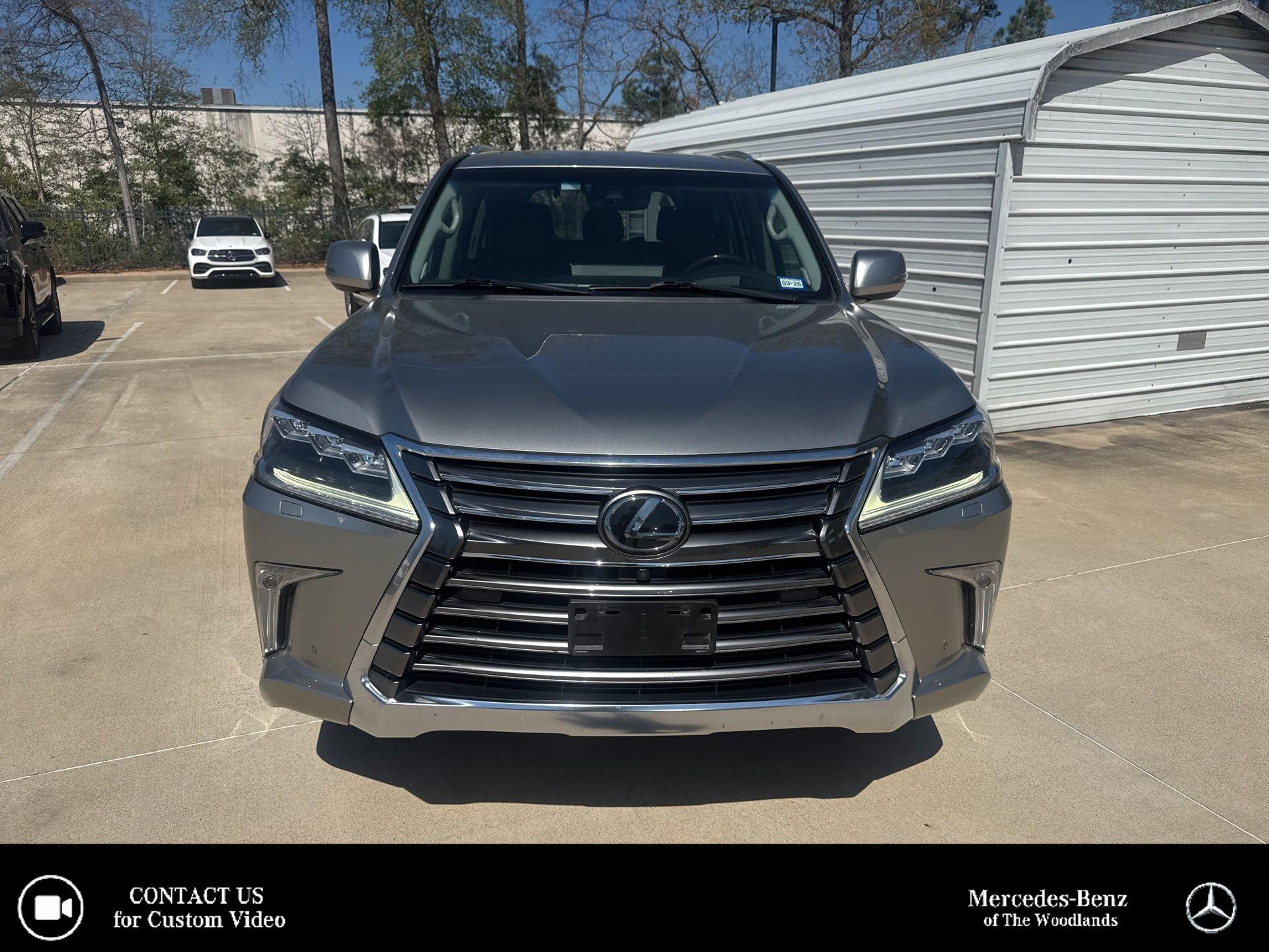 Navigation System,   Luxury Package,   9 Speakers,   AM/FM radio: SiriusXM,   CD player,   DVD-Audio,   Lexus Enform App Suite,   Radio data system,   Radio: Lexus Premium Audio AM/FM/HD Single DVD,   Radio: Mark Levinson Audio System,   Air Conditioning,   Automatic temperature control,   Front dual zone A/C,   Rear air conditioning,   Rear dual zone A/C,   Rear window defroster,   HomeLink,   Memory seat,   Power driver seat,   Power steering,   Power windows,   Remote keyless entry,   Steering wheel memory,   Steering wheel mounted audio controls,   Adaptive suspension,   Auto-leveling suspension,   Heated Wood & Leather-Trimmed Steering Wheel,   Speed-sensing steering,   Traction control,   4-Wheel Disc Brakes,   ABS brakes,   Anti-whiplash front head restraints,   Dual front impact airbags,   Dual front side impact airbags,   Emergency communication system: Lexus Enform Safety Connect,   Front anti-roll bar,   Front wheel independent suspension,   Knee airbag,   Low tire pressure warning,   Occupant sensing airbag,   Overhead airbag,   Rear anti-roll bar,   Rear side impact airbag,   Power moonroof,   Brake assist,   Electronic Stability Control,   Exterior Parking Camera Rear,   Auto High-beam Headlights,   Delay-off headlights,   Front fog lights,   Fully automatic headlights,   Headlight cleaning,   Panic alarm,   Security system,   Speed control,   Auto-dimming door mirrors,   Bumpers: body-color,   Heated door mirrors,   Illuminated running boards,   Power door mirrors,   Spoiler,   Turn signal indicator mirrors,   Auto tilt-away steering wheel,   Auto-dimming Rear-View mirror,   Driver door bin,   Driver vanity mirror,   Front & Rear LED Courtesy Lamps w/Logo,   Front reading lights,   Garage door transmitter: HomeLink,   Genuine wood console insert,   Genuine wood dashboard insert,   Genuine wood door panel insert,   Heated/Ventilated Front & 2nd Row Outboard Seats,   Illuminated entry,   Leather Shift Knob,   Leather steering wheel,   Lexus Enform Destinations Assist,   Lexus Navigation System,   LX Projector Door Lamps,   Outside temperature display,   Overhead console,   Passenger vanity mirror,   Rear reading lights,   Rear seat center armrest,   Tachometer,   Telescoping steering wheel,   Tilt steering wheel,   Trip computer,   Voltmeter,   3rd row seats: split-bench,   Four-Zone Climate Concierge,   Front Bucket Seats,   Front Center Armrest,   Heated Front Bucket Seats,   Heated front seats,   Leather Seat Trim,   Perforated Semi-Aniline Leather Seat Trim,   Power passenger seat,   Power-Folding 50/50-Split Third-Row Seats,   Seat Air Conditioner,   Split folding rear seat,   Passenger door bin,   Alloy wheels,   Wheels: 21' x 8.5' Split-10-Spoke J Aluminum Alloy,   Rain sensing wipers,   Rear window wiper,   Variably intermittent wipers,   3.307 Axle Ratio