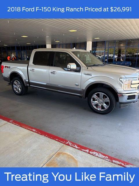 Navigation System, Equipment Group 601A Luxury, FX4 Off-Road Package, GVWR: 7, 050 lbs Payload Package, King Ranch Chrome Appearance Package, Max Trailer Tow Package, Technology Package, 10 Speakers, AM/FM radio: SiriusXM, CD player, Radio data system, Radio: B&O Play Premium Audio System, Air Conditioning, Automatic temperature control, Front dual zone A/C, Higher-Capacity Radiator, Higher-Power Cooling Fans, Rear window defroster, Memory seat, Pedal memory, Power driver seat, Power steering, Power windows, Remote keyless entry, Steering wheel memory, Steering wheel mounted audio controls, Off-Road Tuned Front Shock Absorbers, Speed-sensing steering, Traction control, Upgraded Front Stabilizer Bar, 4-Wheel Disc Brakes, ABS brakes, Chrome Front & Rear Bumpers, Dual front impact airbags, Dual front side impact airbags, Emergency communication system: SYNC 3 911 Assist, Front anti-roll bar, Front wheel independent suspension, Low tire pressure warning, Occupant sensing airbag, Overhead airbag, Twin Panel Moonroof, BLIS Blind Spot Information System, Brake assist, Electronic Stability Control, Active Park Assist, Exterior Parking Camera Rear, Hill Descent Control, Rear Parking Sensors, Auto High-beam Headlights, Delay-off headlights, Front fog lights, Fully automatic headlights, Inflatable Rear Safety Belts, Panic alarm, Security system, Adaptive Cruise Control, Speed control, 4x4 FX4 Off-Road Bodyside Decal, Auto-dimming door mirrors, Bright Belt Moldings, Chrome Door Handles w/Body-Color Strap, Chrome Skull Caps on Exterior Mirrors, Heated door mirrors, Power door mirrors, Power-Deployable Running Boards, Rear step bumper, Tailgate Step w/Tailgate Lift Assist, Turn signal indicator mirrors, Adjustable pedals, AppLink/Apple CarPlay and Android Auto, Auto tilt-away steering wheel, Auto-dimming Rear-View mirror, Compass, Driver door bin, Driver vanity mirror, Front reading lights, Garage door transmitter, Genuine wood dashboard insert, Genuine wood door panel insert, Heated steering wheel, Illuminated entry, King Ranch Leather Bucket Seats, Lane-Keeping System, Outside temperature display, Overhead console, Passenger vanity mirror, Pro Trailer Backup Assist, Rear reading lights, Rear seat center armrest, SYNC 3, Tachometer, Telescoping steering wheel, Tilt steering wheel, Trip computer, Voice-Activated Touchscreen Navigation System, Voltmeter, Front Bucket Seats, Front Center Armrest, Heated front seats, Heated rear seats, Power passenger seat, Split folding rear seat, Ventilated front seats, Extended Range 36 Gallon Fuel Tank, Passenger door bin, Class IV Trailer Hitch Receiver, Integrated Trailer Brake Controller, 18' Machined-Aluminum Wheels, Alloy wheels, Wheels: 20' Chrome-Like PVD, Rain sensing wipers, Variably intermittent wipers, 3.31 Axle Ratio, Disclaimer: Although every reasonable effort has been made to ensure the accuracy of the informatio