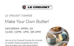 Join us at Le Creuset Conroe for a hands-on experience learning to make delicious fresh butter! We'll feature some of our favorite kitchen essentials like the Le Creuset Butter Crock-a must have for...
