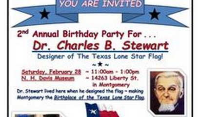 2nd Annual Birthday Party For . . .Dr. Charles B. Stewart Designer of The Texas Lone Star Flag! Saturday, February 28 ~ 11:00am – 1:00pm N. H. Davis Museum ~ 14263 Liberty St. in Montgomery ...