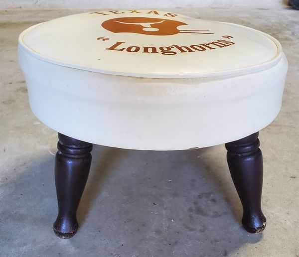 Vintage Texas Longhorns Leather Footstool, Ut, University of Texas, Ottoman, Footstool, Football