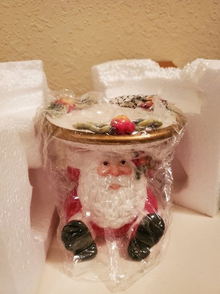 Traditional Christmas colors and winter whimsy makes Noel Santa a beautiful addition to your seasonal decor. Beautiful display of traditional Christmas decor. I personally inspected, found no chips, cracks or other visable flaws. This is a hand painted piece, so no two are alike. The original owner kept this meticulously boxed, only displayed during holiday. The original box included.