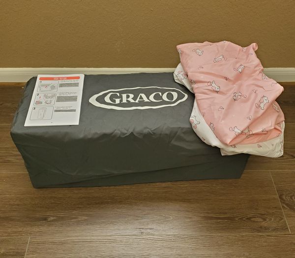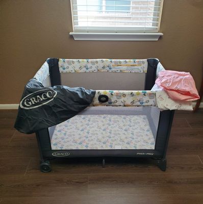 Graco Carnival Fashion Pack n Play with mesh storage bag. Only used for short time. Pack and playComes with storage bag, mesh snap on bag instruction booklet and two new coordinating sheets.