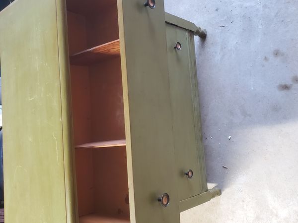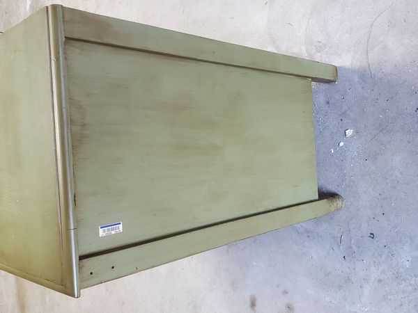 Charming, Chest of drawers with 3 drawers, top drawer is divided. Circa 1930, see photo on back for manufacturer's sticker.. Refinished at some point, with very minimal wear. In very solid shape, two drawers open and close smoothly no issues, the bottom drawer opens and closes, does stick will need minor repair. The size and style are versatile, making it useful in many different rooms. 34' L x 26 1/2' W x 34'H. Very lovely chest.