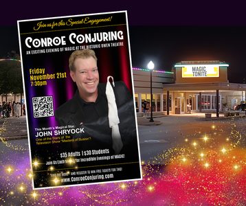 Join us on November 21st for a special evening of magic at The Owen Theatre in our monthly show “Conroe Conjuring” starring “Master Magician” John Shryock!