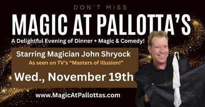 Join us on November 19th for a special evening of magic at Pallotta’s Italian Grill in The Woodlands for a great Italian dinner followed by a performance by “Master Magician” John Shryock!