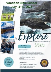 Get ready for an unforgettable adventure as First Missionary Baptist Church–Conroe invites you to travel (no passport required ) to the Emerald Isle for Emerald Crossing: Vacation Bible School!