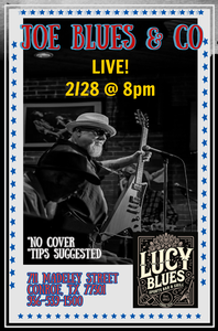 Join us for a rare Saturday occasion with Joe Blues Band playing LIVE at Lucy Blues in Conroe!! Come enjoy some phenomenal music, delicious food from Aunt Jessie's Kitchen, and surround yourself in fun!