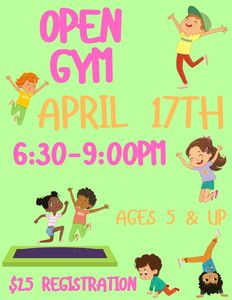Open Gym / 6:30-9:00 pm / Ages 5& Up (All children must be potty trained)
