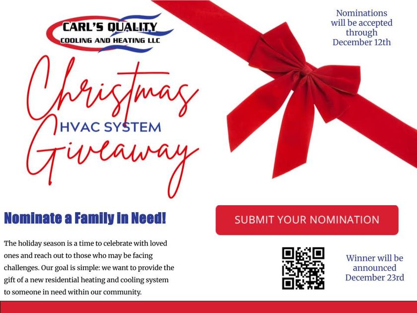 CONROE, TX -- As the holiday season approaches, Carl's Quality Cooling and Heating is proud to announce its annual Christmas HVAC Giveaway in Montgomery County, TX. This heartwarming initiative is designed to provide a warm and comfortable home to a deserving family in need during the festive season.