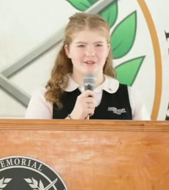 CONROE, TX -- Several students from the Sacred Heart Catholic School in Conroe, read their original works about Veterans Day this past Saturday at the Montgomery County Veterans Memorial Commission's 'Veterans Day Celebration,' a ceremony dedicated to America's Veterans. The students, 8th graders Zoey Field and Ashley Erickson, and 7th grader Paula Seora, each read their original Veteran works to those gathered at the ceremony where Veterans were honored, and 21 new members of the US Armed Forces were inducted into their respective military branches. Each student offered heartfelt lines from their own hands. The essays and poem were a gesture much appreciated by the Veterans and the civilians who attended the ceremony.