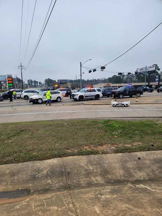 CONROE, TX -- Constable PCT 1 Deputies observed a vehicle south bound on I45 that was reported to have been used in a Aggravated Robbery in Walker County. Sheriff's Deputies and Conroe PD joined and a stop was initiated. The suspect vehicle failed to yield, turning west on 105. The vehicle ran the red light at Loop 336 W, causing a multiple vehicle accident. One suspect ran on foot and was taken into custody in the HEB parking lot by PCT 1 and Sheriff's Deputies. A passenger was detained at the accident scene. Suspect vehicle returned as stolen along with a stolen firearm found in the vehicle. No serious injuries from the accident reported at this time. Montgomery County Sheriff's Office is taking lead on the investigation and Conroe Police Department is working the accident.