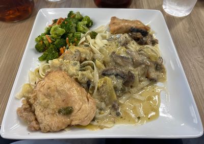 Diners LtoR: Kayla Whitley, Sandy and Bob Schneider, are backed up by Chef Dennis Kozak, and his students who cooked and served dishes to diners at the 1pm lunch session at Montgomery ISDs ‘Café at the Den;’ located inside the CTE Center in Montgomer