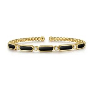 14k Yellow Gold Bujukan Cuff Bracelet with Onyx and Diamonds