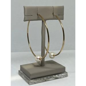 14k Yellow Gold Large Hollow Tube Hoop Earrings with Pearl
