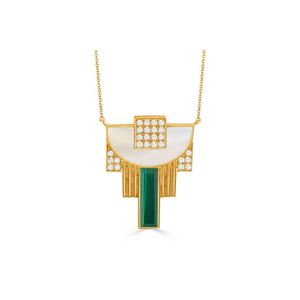 18k Yellow Gold Diamond, Malachite & White Mother of Pearl Fashion Necklace