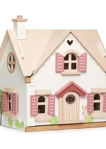 Delightful countryside cottage with a natural wood roof, shutters, cut out windows and space in the attic to make a bedroom. Includes a retro style set of furniture.