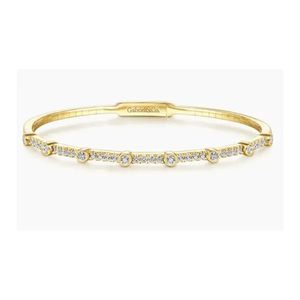 14k Yellow Gold Bezel Station Diamond Bangle / Gabriel and Co