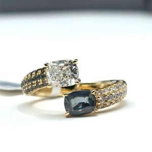 14k Yellow Gold Open Shank Alexandrite, Diamond & Teal Sapphire Ring