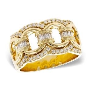14k Yellow Gold Diamond Wide Link Shaped Ring / Allison Kaufman