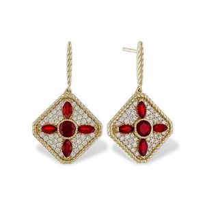 14k Yellow Gold Diamond and Ruby Drop Earrings / Allison Kaufman