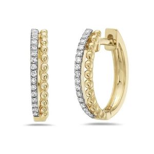 14kYG Earrings - Round 0.08ctw Natural Diamonds - Huggie Hoops