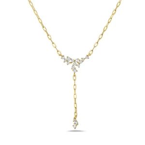 14k Yellow Gold Diamond Lariat Style Necklace / Bassali