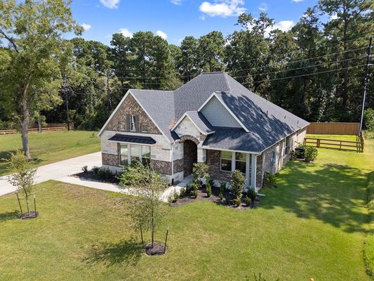 Thoughtfully designed and built with exceptional quality, this home is tucked away on a private 1/3-acre lot backing to peaceful woods, offering privacy and natural beauty. As energy efficient as it is beautiful, it features spray foam insulation, Energy Star appliances and stylish modern touches throughout, including $13,000 of automated blinds. Inside, the open, light-filled layout includes a private study, gourmet island kitchen with upgraded 42" cabinetry and sleek quartz countertops and a spacious family room with a wall of windows and custom niches framing the fireplace. The primary suite is a true retreat with a spa-inspired walk-in shower and impressive custom closet, while two generously sized secondary bedrooms and a full bath complete this split plan. Outdoors, enjoy lush landscaping with a 19-zone irrigation system, a large backyard for play or relaxation, plus ample parking and storage with an attached 2-car garage, a detached single-car garage and an extended driveway.