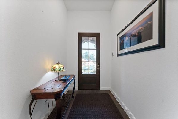 Thoughtfully designed and built with exceptional quality, this home is tucked away on a private 1/3-acre lot backing to peaceful woods, offering privacy and natural beauty. As energy efficient as it is beautiful, it features spray foam insulation, Energy Star appliances and stylish modern touches throughout, including $13,000 of automated blinds. Inside, the open, light-filled layout includes a private study, gourmet island kitchen with upgraded 42" cabinetry and sleek quartz countertops and a spacious family room with a wall of windows and custom niches framing the fireplace. The primary suite is a true retreat with a spa-inspired walk-in shower and impressive custom closet, while two generously sized secondary bedrooms and a full bath complete this split plan. Outdoors, enjoy lush landscaping with a 19-zone irrigation system, a large backyard for play or relaxation, plus ample parking and storage with an attached 2-car garage, a detached single-car garage and an extended driveway.