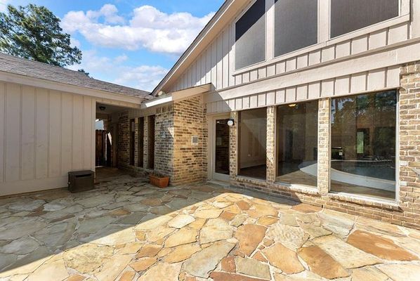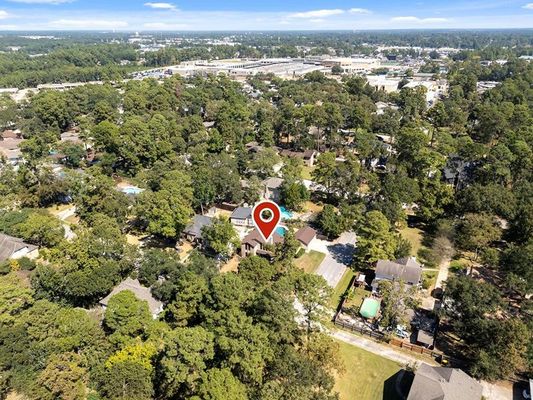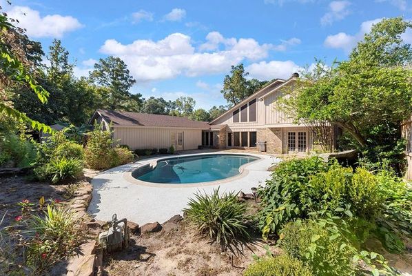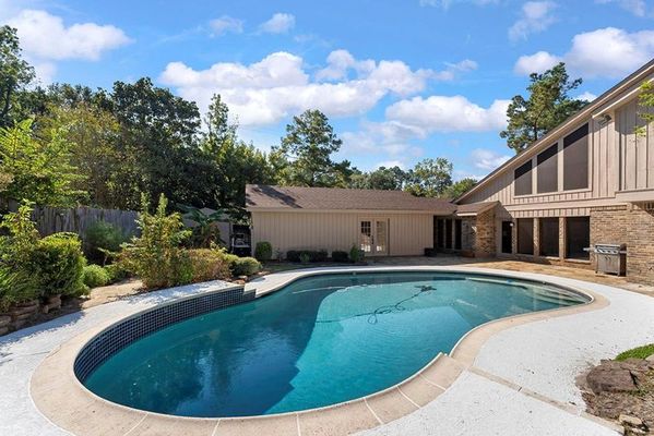 Prime Location is Conroe - just walking distance to Conroe High School! This four-bedroom, two-and-a-half bath corner lot home offers great curb appeal, classic charm, a sparkling pool and a detached game room - perfect for entertaining! With soaring ceilings throughout, this home features a study, a separate dining area and a spacious family room with a gas-log fireplace with a floor-to-ceiling white brick surround. The kitchen offers updated appliances and ample counterspace. The primary bedroom is on the first floor with an ensuite bath with dual vanities and a large walk-in closet. Upstairs, you will find three generously sized bedrooms and a full bath. The converted garage serves as a climate-controlled game and party room with a full bar and sink! Designed for ultimate enjoyment, the expansive backyard has a sparkling pool surrounded by flagstone decking, native greenery and a waterfall feature- ideal for lounging or large gatherings! NEW ROOF in 2023!