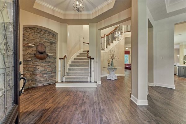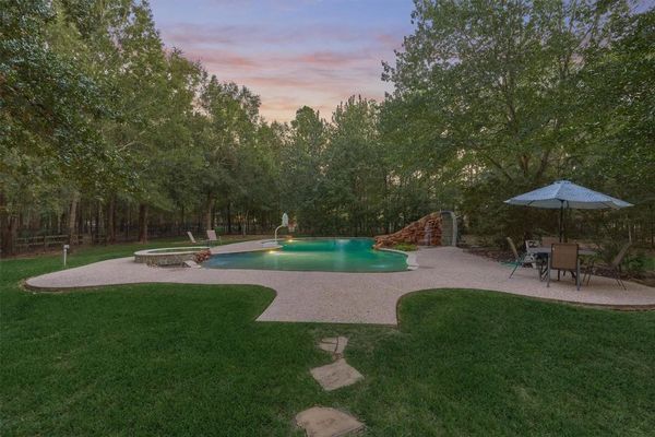 Welcome to your new sanctuary! Nestled on a tranquil 1-acre treed lot, this stunning home is a rare gem that seamlessly blends elegance with everyday functionality, perfect for both entertaining and family living. From the moment you arrive, you'll be captivated by the charm and stunning curb appeal, complete with mature trees and lush landscaping that invite you to the gorgeous outdoor oasis. Step inside and be greeted by a grand entryway that exudes sophistication, leading to a breathtaking open-concept living space where every detail has been thoughtfully curated. The updated kitchen is a culinary dream, featuring pristine white quartz countertops, abundant cabinetry for all your storage needs, and a generous island that encourages gatherings. The kitchen flows effortlessly into a stylish living area adorned with a cozy fireplace, creating an inviting atmosphere that's perfect for both intimate evenings and lively get-togethers. As you explore the first floor, you’ll find a well-appointed office with French doors, providing a quiet space for work or study. The formal dining room is an exquisite setting for hosting dinner parties and holiday celebrations, while a guest bedroom on the main level offers privacy and convenience for visitors. The luxurious primary suite is a true retreat, boasting an updated bath complete with a freestanding tub, a spacious shower, elegant quartz counters, and an expansive closet designed for the most discerning fashionista. Venture upstairs to discover a sizable game room, ideal for family fun or movie nights, along with three additional bedrooms that provide ample space for family or guests. The updated secondary baths feature modern fixtures and finishes, while brand new carpet throughout the home adds a fresh, inviting touch. This property is not only beautifully designed but also intelligently equipped, featuring a Generac generator for peace of mind during outages, a Tesla charger in the oversized 3-car garage, and recent updates including a new roof (2019) and an HVAC system (2021). Step outside into your own private paradise! The expansive backyard is an entertainer's dream, complete with a magnificent pool surrounded by beautiful landscaping and mature trees, providing a serene backdrop for summer gatherings and relaxation. Imagine hosting barbecues, family reunions, or simply enjoying a quiet evening by the pool under the stars. Located within a community that offers a plethora of amenities and boasting a super low tax rate, this home also benefits from access to excellent schools, making it an ideal choice for families. The combination of a backyard oasis, luxurious living spaces, and a fantastic location make this property truly special.