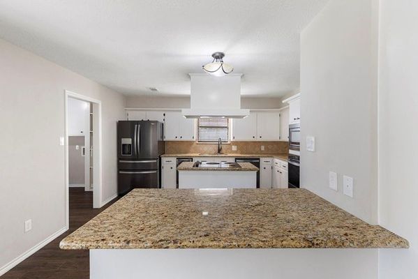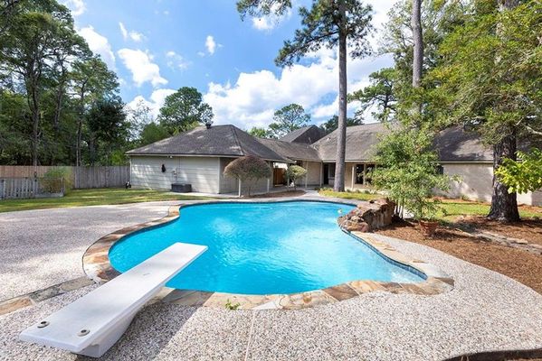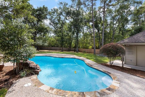 Welcome to this charming 4-bedroom, 2.5-bath home situated on a beautiful ½ acre lot! Enjoy the privacy of backing up to a serene greenbelt with scenic walking trails just beyond your backyard. This home features a sparkling pool with an expansive deck surrounded by plenty of lush green space—perfect for relaxing or entertaining. You’ll love the impressive curb appeal, featuring mature trees and thoughtfully maintained landscaping. Inside, soaring ceilings and abundant natural light highlight the rich wood grain tile flooring that flows through the living areas. The spacious family room opens seamlessly to the dining room and island kitchen, which offers granite countertops and stainless-steel appliances, including a convenient beverage refrigerator. The oversized primary suite provides a peaceful retreat, complete with an ensuite bath featuring modern finishes. The split floor plan features three generously sized secondary bedrooms and a Jack-and-Jill bath. A must see!