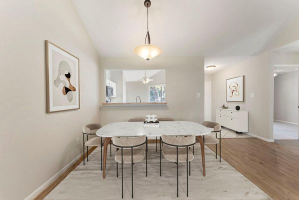 Welcome to this delightful one-story home nestled in the highly sought-after Bridgestone West community of Spring! With its prime location offering swift access to I-45 and Grand Parkway 99, you'll enjoy both convenience and tranquility. The inviting curb appeal and charming front porch beckon you inside, where a beautifully lit open family room and dining area await. Featuring vaulted ceilings and a cozy corner wood-burning fireplace, this space is ideal for both entertaining and everyday family living. Newly installed vinyl plank flooring adds a modern touch throughout. The well-designed kitchen boasts ample counter space and a pantry, making meal prep a breeze. Retreat to the spacious primary suite, complete with plush new carpet, an ensuite bathroom with dual sinks, and a generous walk-in closet. The smartly arranged split floor plan also includes two additional bedrooms, both featuring fresh carpeting, and a full hall bath. Step outside to your expansive covered patio, perfect for summer barbecues, overlooking a lush, green backyard with a convenient storage shed. This home is brimming with potential and is ready for you to make it your own. Don’t miss out on this incredible opportunity – the seller is motivated and ready to make a deal!