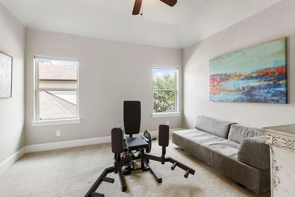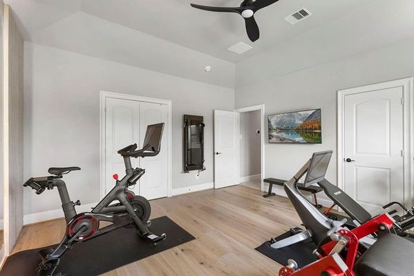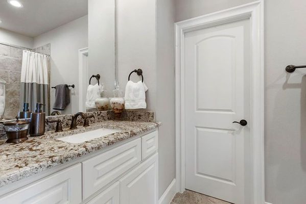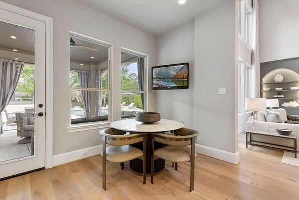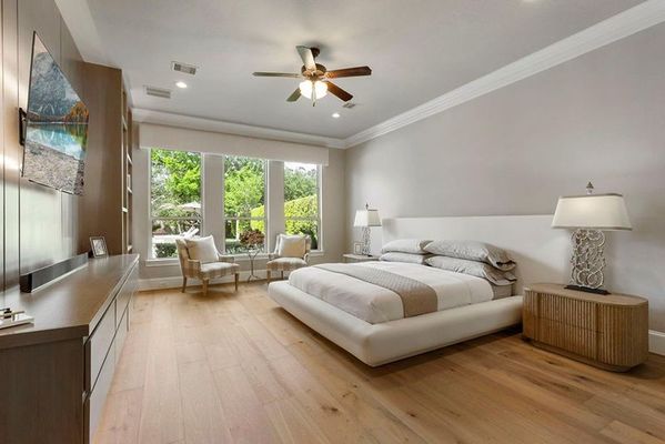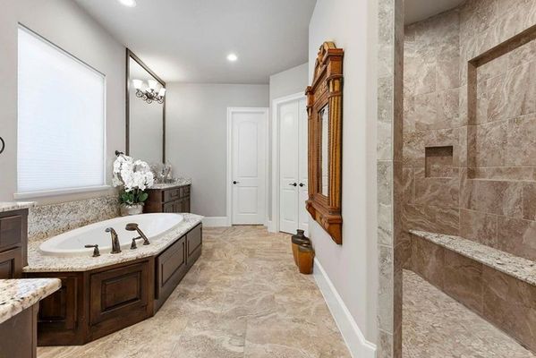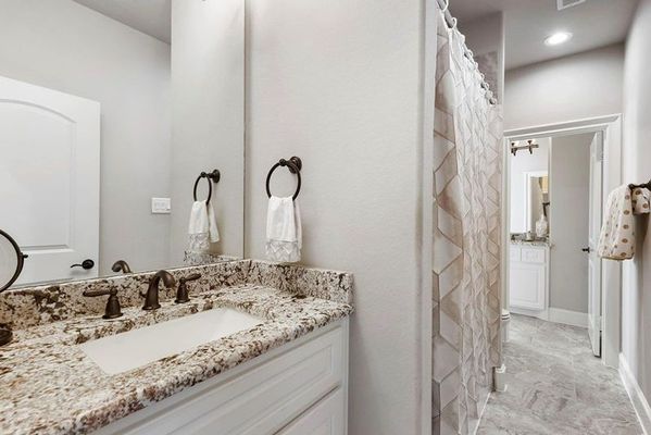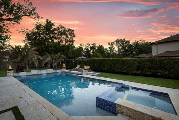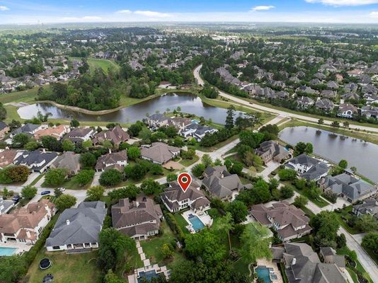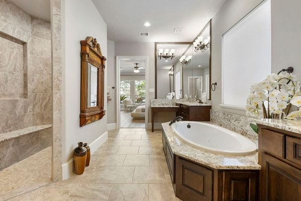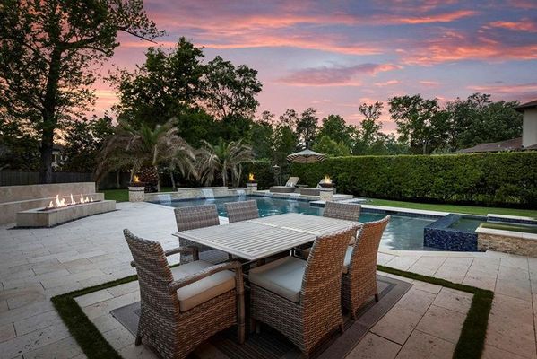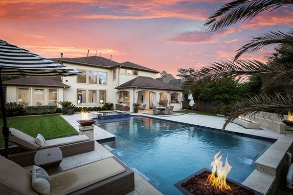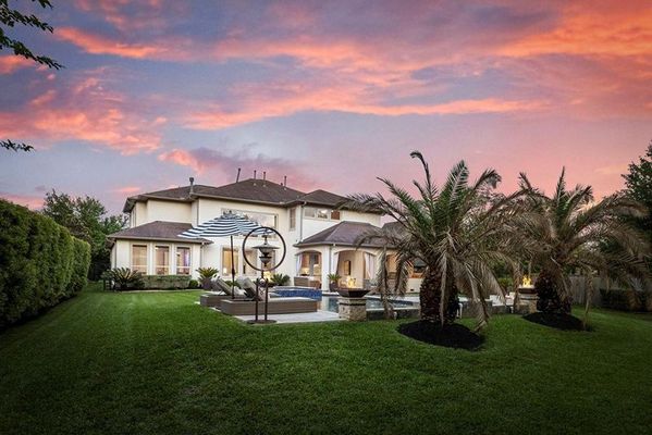 EXQUISITELY appointed and thoughtfully designed, this stunning 5-bedroom, 4.5-bath residence in the desirable Creekside community blends timeless elegance with modern luxury. Recently and professionally curated with high-end finishes throughout, the home features rich, scratch-resistant wood flooring that flows through the main living areas. The formal dining room showcases a painted limestone accent wall, echoing the floor-to-ceiling limestone fireplace in the soaring family room. The island kitchen impresses with Quartzite countertops, white oak cabinetry, rubbed bronze finishes, double ovens, a built-in Sub-Zero refrigerator and under-cabinet lighting. The serene primary suite offers European blinds, custom built-ins and a spa-like bath. Convenient additional downstairs bedroom - perfect for guests. Upstairs includes a media room, a game room and three bedrooms. Enjoy a private backyard oasis with a heated pool, spa, fire pits, and outdoor kitchen. Whole-home generator included!