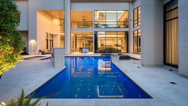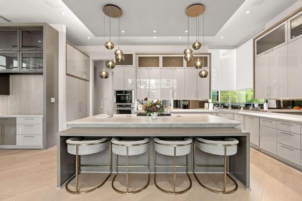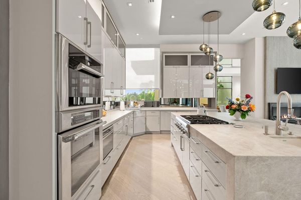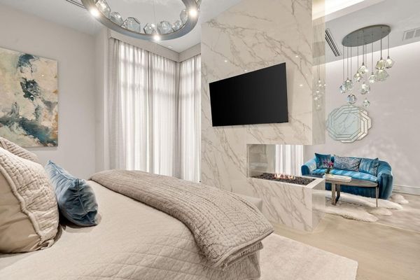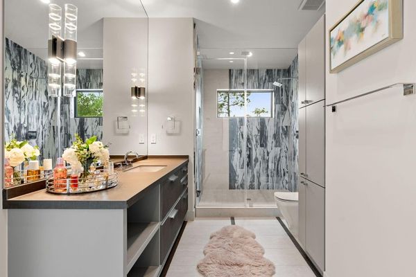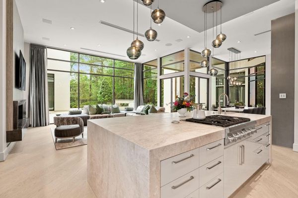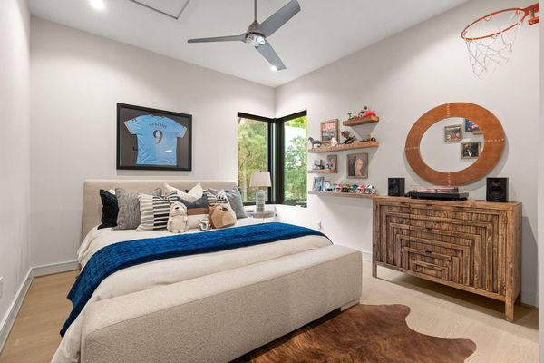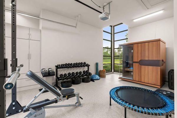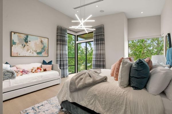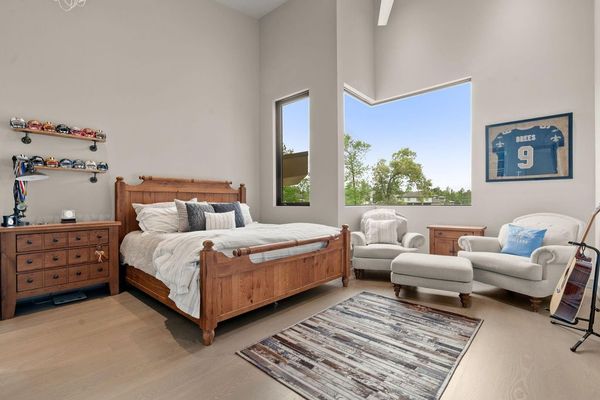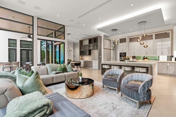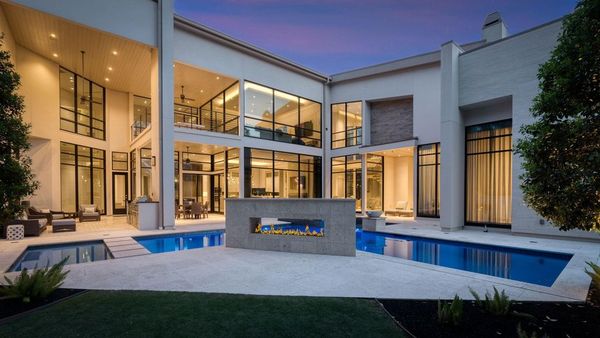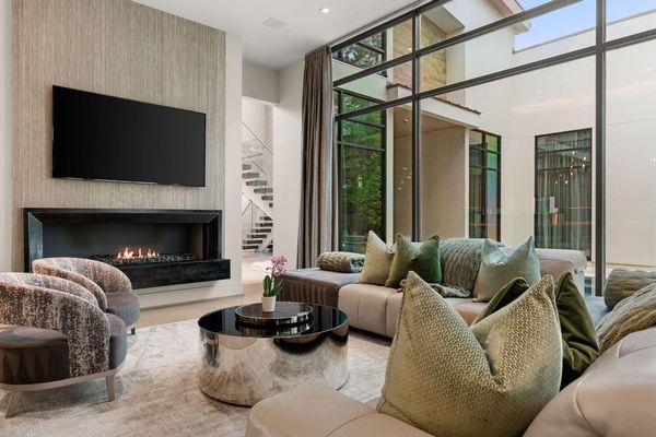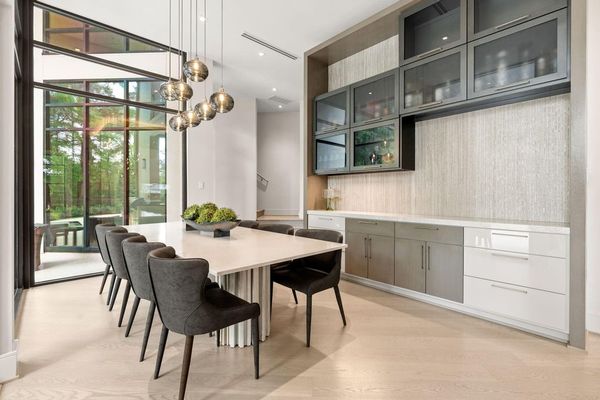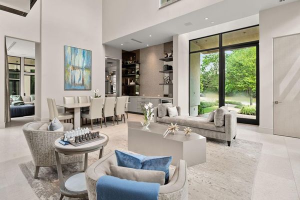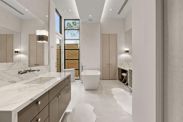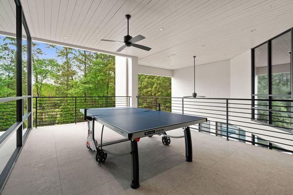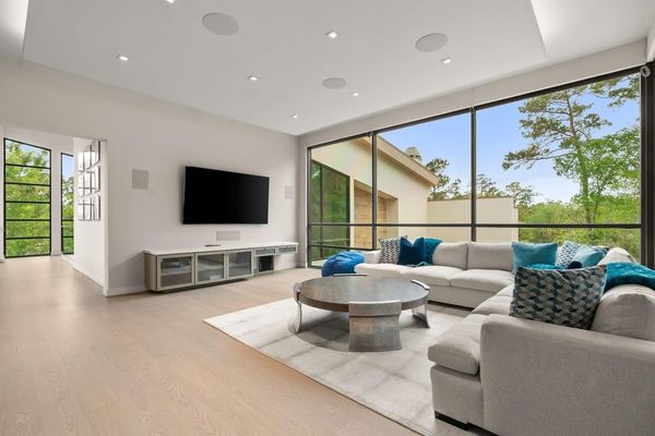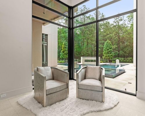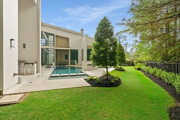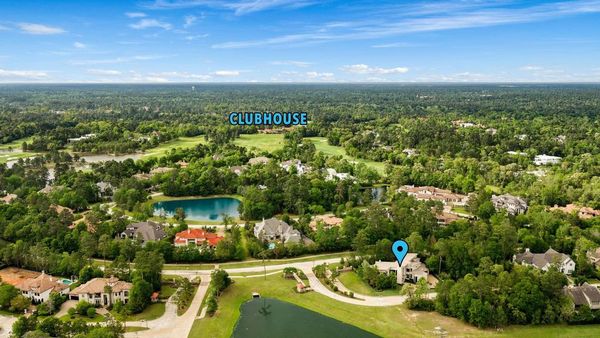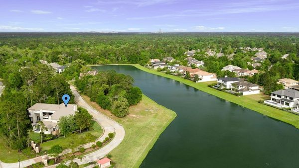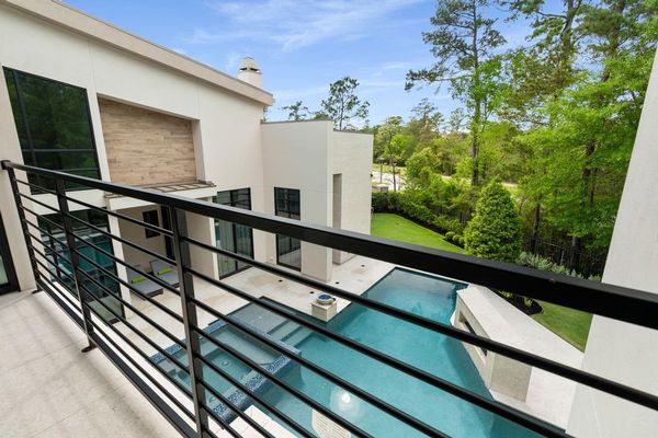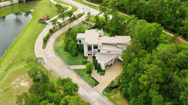 Welcome to your dream home in the prestigious gated community of Carlton Woods Creekside! This absolutely stunning modern/contemporary residence is situated on a coveted corner lot, offering breathtaking water views that create a serene backdrop for everyday living. As you step inside, you are greeted by an abundance of natural light streaming through walls of windows, accentuating the exquisite craftsmanship and attention to detail throughout. The soaring two-story ceilings and dramatic light fixtures enhance the elegance, while a floating staircase serves as a stunning focal point. Entertain in style in the formal living and dining areas, complete with a built-in credenza featuring a wine fridge for your collection. The private study with pocket doors provides a flexible workspace, perfect for remote work or quiet reflection. Retreat to the luxurious primary suite, where you'll discover dual closets, a spa-like bath with a jetted tub, a walk-in shower, and a dual-sided fireplace. The gourmet kitchen is a chef's dream, boasting a leathered granite island, Thermador appliances, and a Sub-Zero refrigerator, while the oversized utility room doubles as a prep kitchen with a sink and icemaker. A first-floor guest suite with a pool bath ensures comfort for visitors, while the upstairs features three en-suite bedrooms, a spacious game room, a balcony, and a kitchenette for effortless entertainment. The converted single garage serves as a home gym but can easily be reverted back to its original purpose. With Savant lighting and a 48KW Generac generator for peace of mind, this home truly has it all. Don't miss your chance to live in luxury—schedule a private showing today!