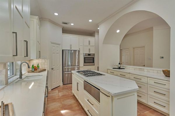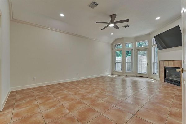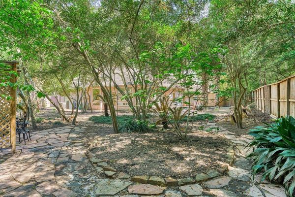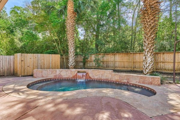 This sought-after one-story patio home is nestled in the desirable Castlegreen Golf Course neighborhood of The Woodlands. Built using the La Paloma Village Builders plan and thoughtfully customized by the original owner, the home sits on a premium, pie-shaped lot selected for both privacy and charm. Inside, high ceilings and an abundance of double-paned windows create a bright, open-concept living space filled with natural light. The updated kitchen features quartz countertops, stainless steel appliances, a gas cooktop, and a convenient warming drawer—perfect for both everyday living and entertaining. A private home office includes a custom floor-to-ceiling bookcase and offers a serene view of the water feature, making it an ideal workspace. The split floor plan provides excellent privacy, separating the primary suite from the secondary bedrooms. The spacious primary suite includes a cozy gas log fireplace, along with a luxurious bathroom featuring a large walk-in shower, soaking tub, dual sinks, and an oversized walk-in closet. A second gas log fireplace enhances the comfort of the family room. Outdoors, enjoy a low-maintenance yard complete with a heated spa pool, sprinkler system, and generator for added convenience and peace of mind. Ideally located in the heart of The Woodlands, this home offers easy access to shopping, dining, and recreation—bringing together comfort, style, and an unbeatable location.