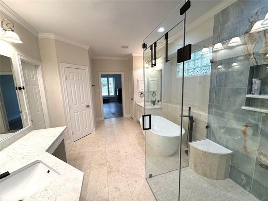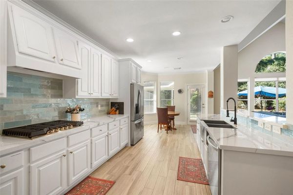 Welcome to your dream home, a stunning remodel nestled in a prime location that perfectly blends elegance and functionality. Step into the heart of this residence, where a chef’s dream kitchen awaits, featuring exquisite marble countertops, a custom accent backsplash, a stainless farmhouse sink, and a top-of-the-line 5-burner Gallery gas cooktop. This culinary oasis flows seamlessly into the spacious Great Room, adorned with a captivating wall of windows that invites the beauty of nature indoors. The serene Primary Bath is a true retreat, boasting a luxurious marble walk-in rainfall shower and a separate soaking tub for ultimate relaxation. Fresh paint and new carpet throughout the home create a warm and inviting ambiance. Enjoy ample space with 5 generously sized bedrooms, a large game room perfect for entertaining, and a dedicated home office with elegant glass French doors. Nestled on a sprawling 11,905 sq ft lot, this property includes a detached oversized garage, ensuring both convenience and comfort. Don’t miss your chance to own this remarkable home—call now for your personal tour and step into a lifestyle of luxury!