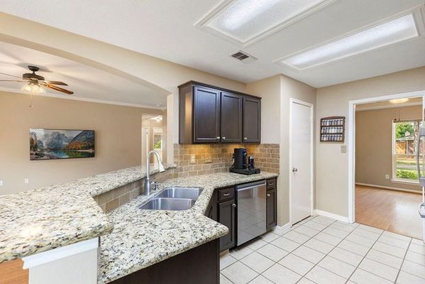 Welcome to 1431 W Welsford Dr in the family-friendly Imperial Oaks community! This beautifully updated 4-bedroom, 2-bath home offers a functional split floor plan with modern finishes throughout, plus a versatile flex space that can serve as a formal dining room, home office, or additional living area. Enjoy a freshly refinished wooden front door, durable, no-carpet laminate and tile flooring, elegant crown molding, and an eat-in kitchen featuring granite countertops, stainless-steel Whirlpool appliances, and a new Samsung gas range and dishwasher. The spacious primary suite is a private retreat with a soaking tub, a separate shower with a new glass door, new toilets, two sinks, and two walk-in closets with custom shelving. Step outside to a shaded backyard with a custom stone pathway and deck, movable gazebo, new pressure-treated fence, new sprinkler system, and a French drain. Additional highlights include a double-wide driveway, fresh exterior paint, and updated windows.